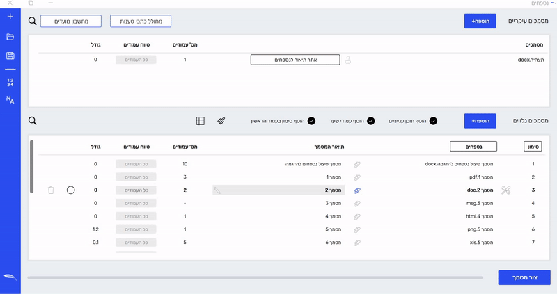 פיצול נספח לכמה נספחים דרך חלון הנספחים