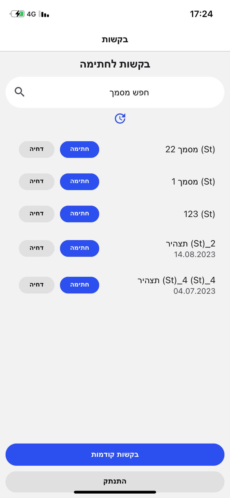 שליחת מסמך לחתימה לאפליקציה
