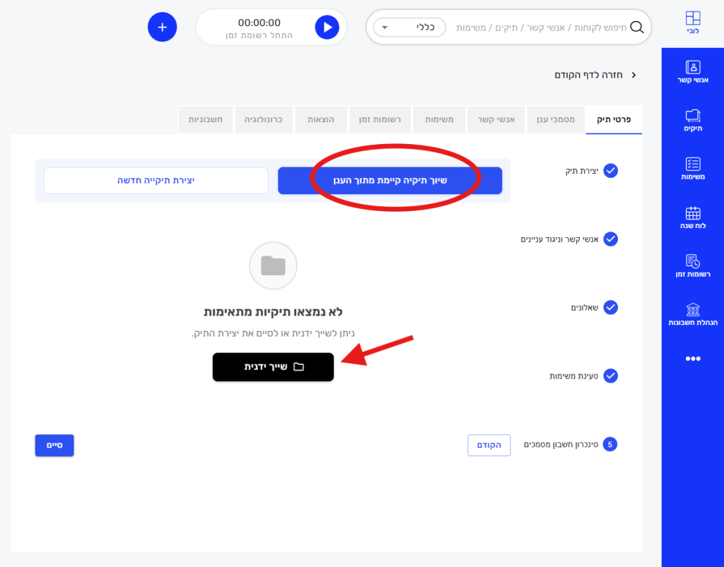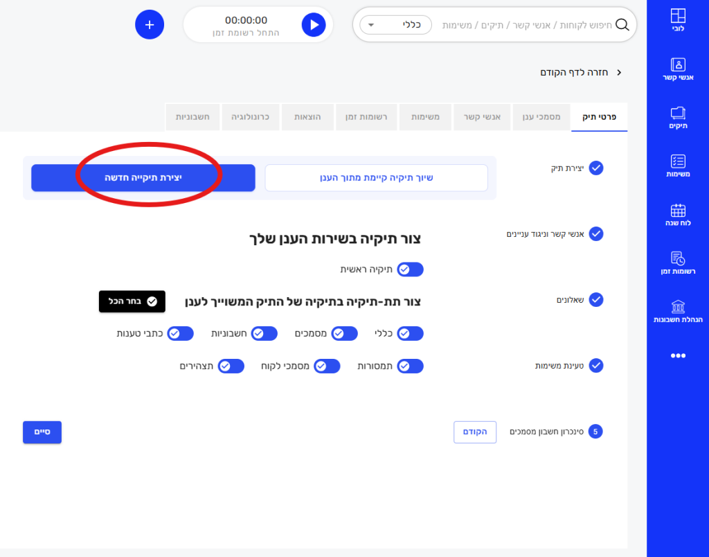 2. יש ללחוץ על כפתור "הוספת תיק חדש" בצד שמאל ולפעול על פי השלבים הבאים: