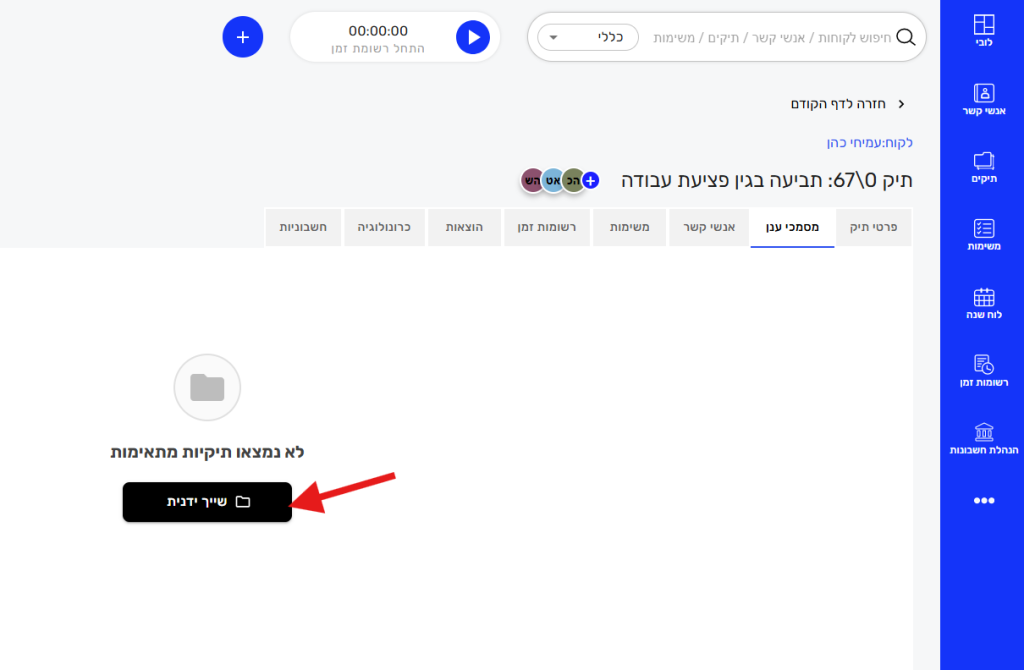 לאחר ששייכנו את אחד החשבונות שלנו נוכל לגשת לתיק הלקוח ולשייך את התיקיה והמסמכים.